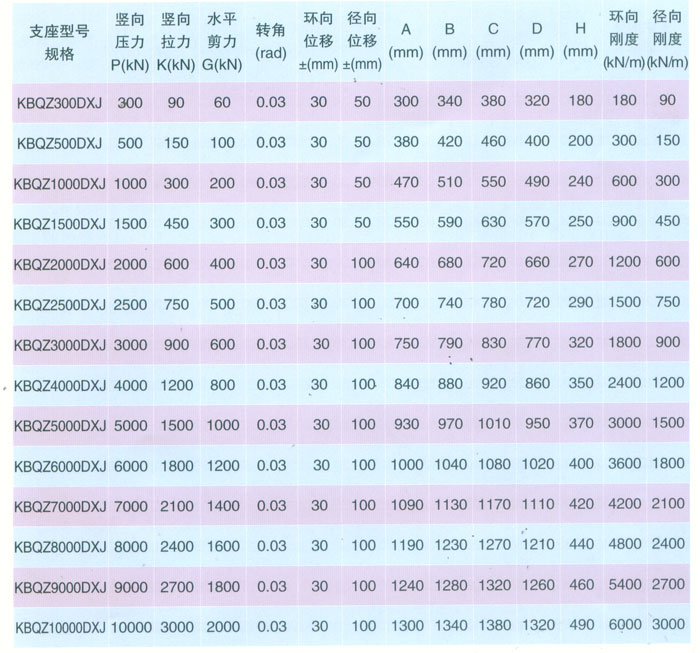 KBQZ-SXJ双向位移减震型球形支座参数表 表10
